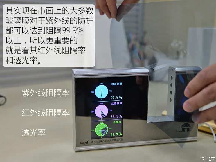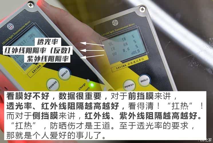 怎么办?如果你对贴膜多少有些要求和追求,起码要找个具备烤灯设备的店面来选购,(基本的烤灯都没有,或者不让你亲自感受,基本就别考虑了)选之前用烤灯试一下隔热效果,贴之后再试试,条件允许的话,3个月后再去试试隔热率,一些假货或者以次充好的,一般都禁不住时间考验(伪隔热,有衰减),还有一点就是,前挡不要去过去关注紫外线隔热,几乎所有的原车前挡,紫外线阻隔率都不低,有些个别的还能达到99%,这点我们在之前的文章中多次聊过,重点就是红外线和透光率,那些拿紫外线隔热忽悠你的,可以忽视。