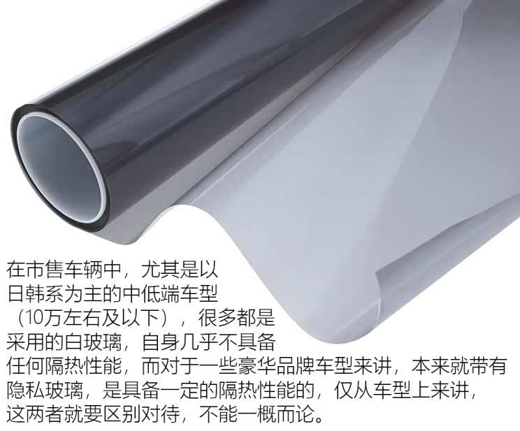 这是很多人问的最多的问题,但要系统了解,其实咱们要拆分开一点点聊,首先就是隔热性能,总隔热率,但其实其中最为主要的是红外线阻隔率,太阳光中有53%的热量是来自红外线,在市售车辆中,尤其是以日韩系为主的中低端车型(10万及以下),很多都是采用的白玻璃,自身几乎不具备任何隔热性能,而对于一些豪华品牌车型来讲,本来就带有隐私玻璃,是具备一定的隔热性能的,仅从车型上来讲,这两者就要区别对待,不能一概而论。