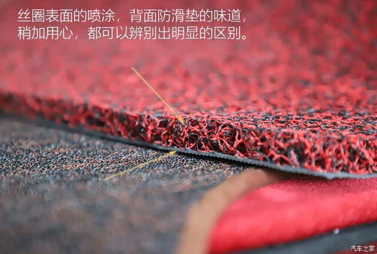 既然说了这么多猛料,那么对于我们普通消费者来讲,究竟如何选择靠谱的脚垫呢?咱们从两个方面聊,第一个就是:闻,无论是什么样的脚垫,选购时还是要仔细闻一闻,闻哪里?闻表面的皮子或者丝圈,闻它的缝线部分,闻它的背面,闻辅料。一些采用劣质胶水或者皮子的产品,通过这种简单的办法还是可以辨别的,还有一点就是:因为劣质脚垫往往在夏季挥发更严重,所以如果是夏季选购,其实更容易通过味道来辨别,对于普通消费者来讲,这点确实是个有效的办法。