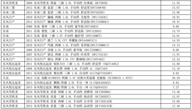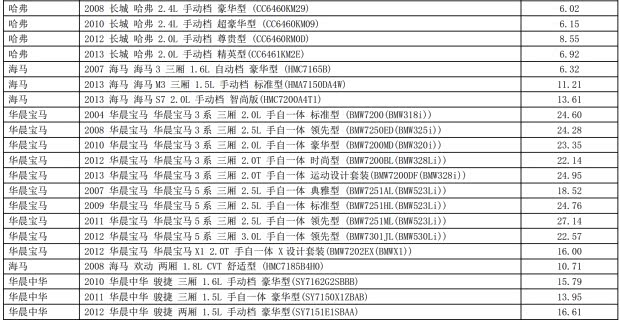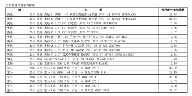 500车型常用配件负担指数公布