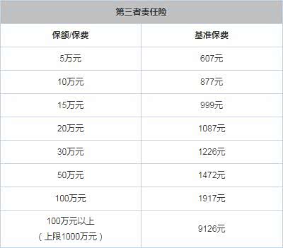 上表的数据是基准保费(新车并且无出险记录),而实际购买中第三者责任险的保费根据使用年限、往年的理赔记录等等都有相应的浮动(优惠或者升高),各家保险公司的保费折扣幅度也不一样,目前市场上三者险保费8-9折不等。另外,100万元以上的三者险需要到保险公司单独申请,在4S店等保险代理点是不能办理的。