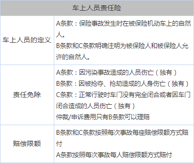 在第三者责任险上,三种条款中A条款和C条款相对要求宽泛一些,B条款比较严格。