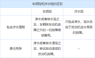 车损险和涉水险的区别: