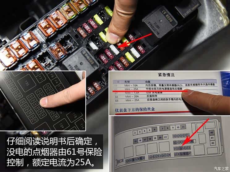 每位驾驶员应该仔细阅读车辆说明书,车辆的所有功能在说明书里都会介绍。比如这次的点烟器故障,如果提前阅读说明书那解决起来更容易。还有就是这次故障原因不在车辆本身,而是用电设备负载增大造成的。点烟器经常链接外置用电设备,如果此设备功率过大就会造成保险熔断。另外就是更换高功率大灯灯泡、雾灯灯泡,这也很容易造成保险熔断,正确合理的使用车辆,才会减少不必要的麻烦和金钱的浪费。(文/汽车之家 杜雷)