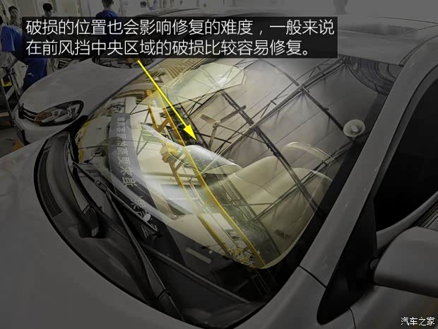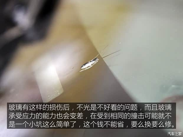 [汽车之家 我该怎么办] 之前我们介绍过玻璃免更换修复工艺,不过前几天我们同事跑高速的时候前风挡被石子击中了,留下了一个“小太阳”,而且这个位置有点“棘手”,我再帮助同事联系修复之余,借此再聊一下修补玻璃这事儿。