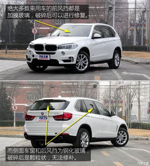汽车前后左后一圈玻璃,其实材质是不一样的,前风挡是夹膜玻璃(普通玻璃中间加膜),而侧车窗和后风挡则是钢化玻璃;加膜玻璃受到外力后会出现小坑或者是裂纹,而钢化玻璃受到外力后就会碎成颗粒状(整体碎),所以只有前风挡可以进行修复。
