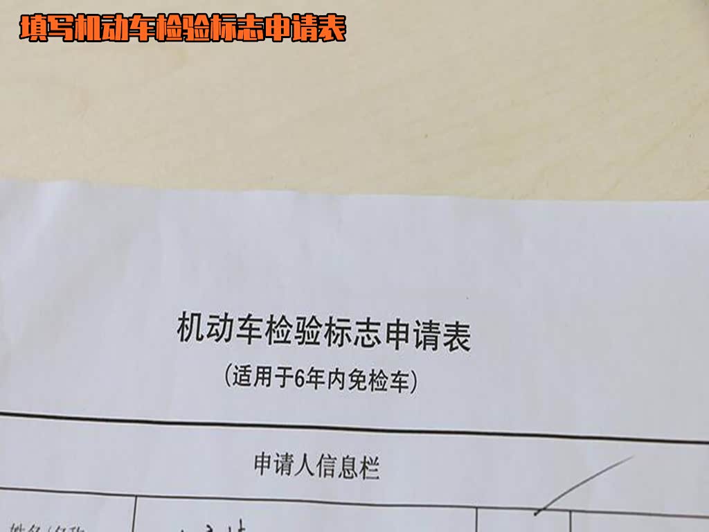 当我们达到车管所以后,会看到年审申请表填写处,该出有申请表和笔。按照给出的示例,进行填写即可。