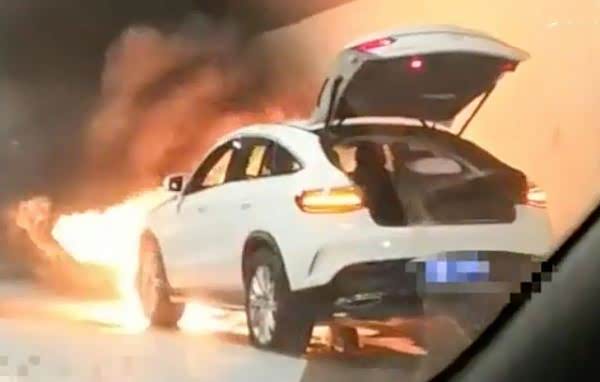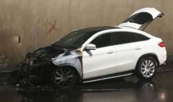王先生的奔驰车刚保养完从4S店开出来,才开了70分钟,车辆前方就开始冒烟,随后就在隧道里着火了。