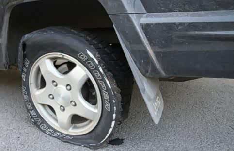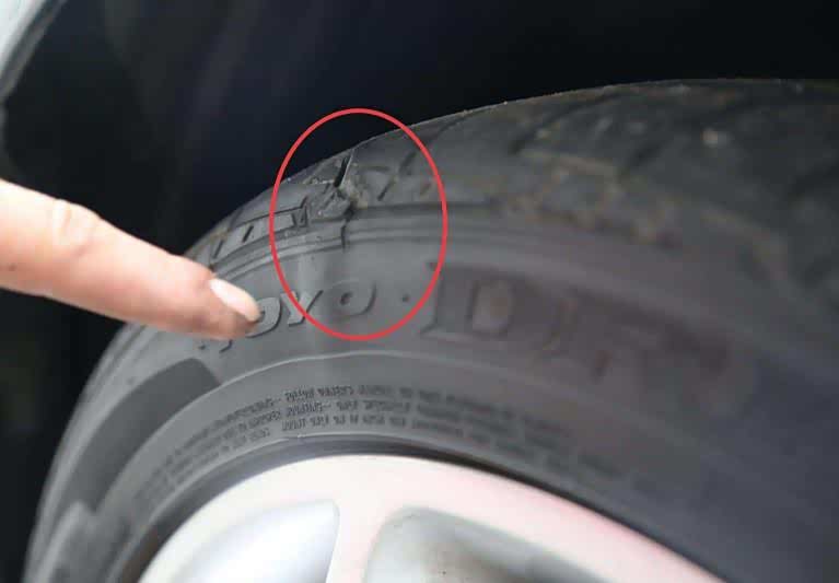 如果在用车过程中是前轮胎爆炸,这个时候就需要紧握方向盘,避免车轮受力导致方向盘失控。同时尽可能的踩制动踏板,但是一定要轻踩,避免已经爆胎的前轮轮胎脱离。