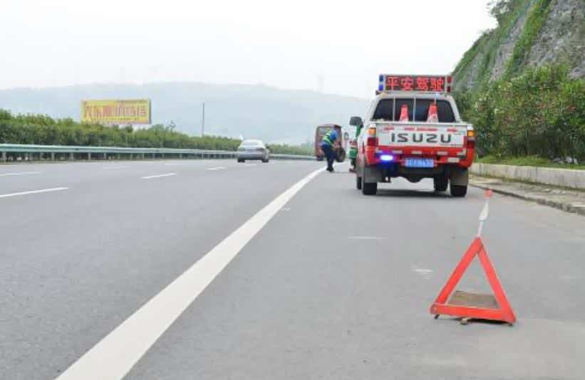 同时应该在车辆后150米以外位置摆放三角架,打开车辆四角闪,提醒后方车辆及时进行避让,以免发生二次事故。