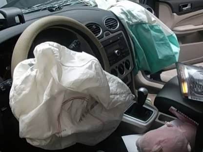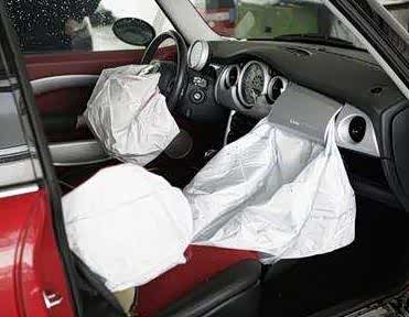 当汽车发生严重碰撞时,达到气囊展开条件,充气装置将会释放大量气体,安全气囊开始膨胀并弹出,为车主形成一个缓冲装置,保护住驾驶员的头部、胸部等,避免人直接撞到汽车上,尽最大可能降低车主受伤程度。