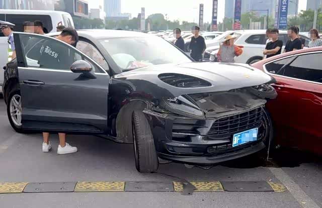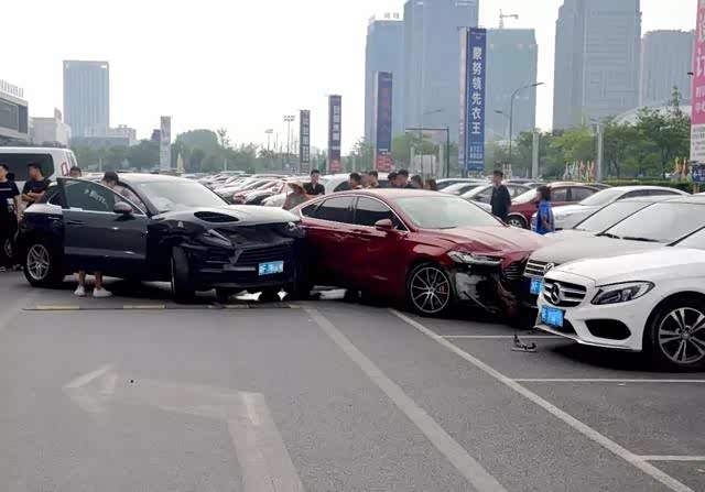 通过现场调查发现,因为保时捷和福特车的驾驶员都是逆向行驶,然后根据冲撞力度看车速都不低。红色福特被拦腰撞上之后,又冲向了旁边停车位里的三辆车。