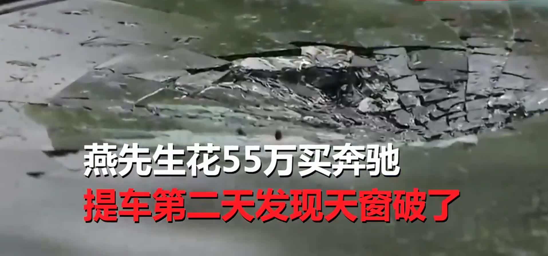 据媒体报道,近日西安的燕先生花55万买了辆奔驰,提车第二天发现天窗破了,销售表示,因车已在外面过夜,可能是燕先生在外面被砸。燕先生调取监控后发现提车时玻璃已碎,而车行总经理坚称那是镜面反光。燕先生还发现,55万的车,发票上却只有51万,对此,经理支支吾吾,燕先生随即报警。之后燕先生反被4S店老板威胁,称燕先生报警、叫记者,又喊社会人,要投诉燕先生。