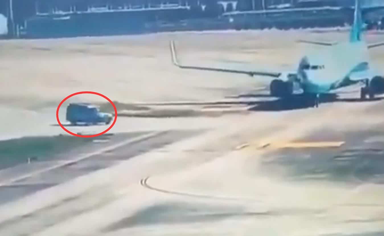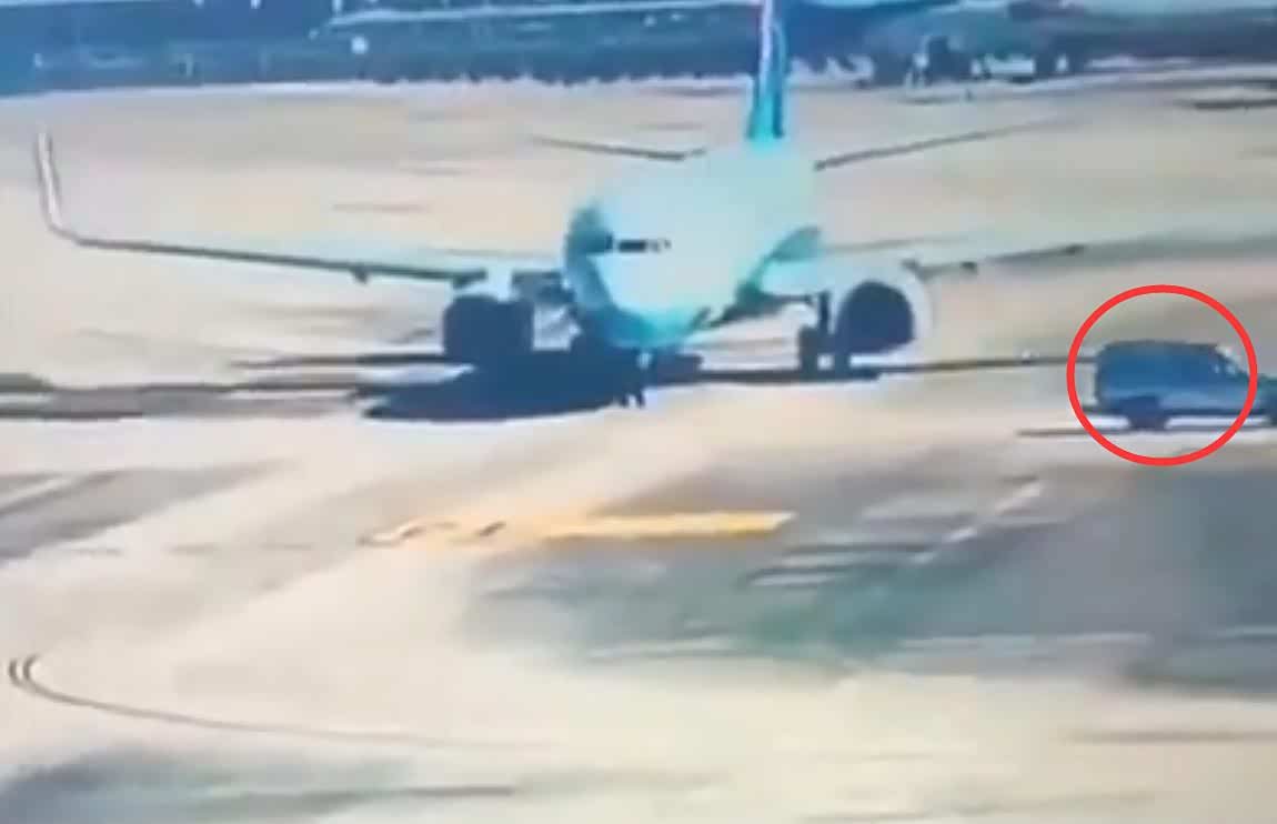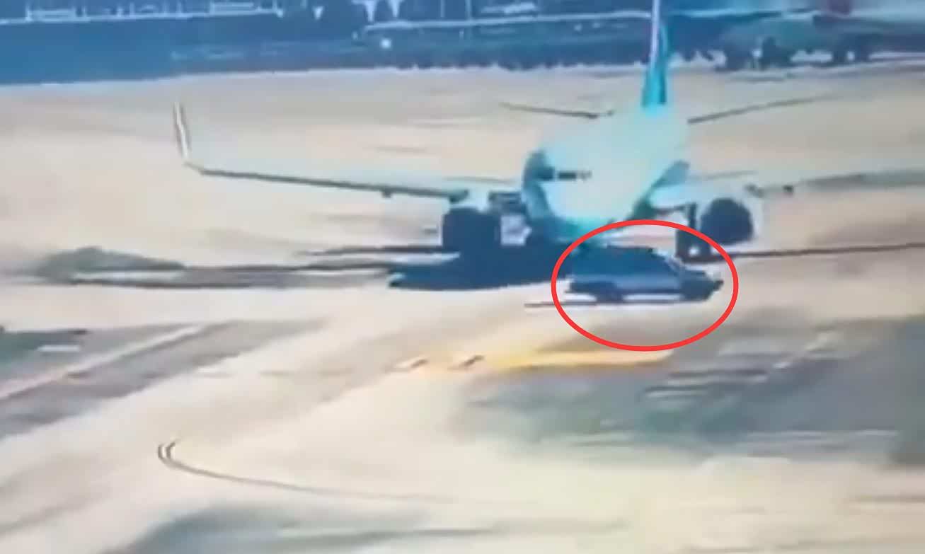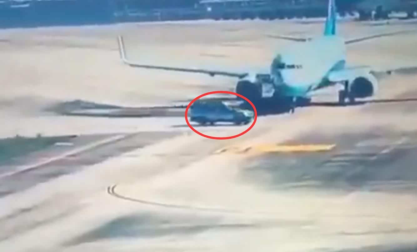 从现场拍摄的视频可以看到,当时一架客机正在滑行道上行进,准备起飞,此时一辆机动车突然从其前方横穿滑道,所幸客机机组及时应对,立即中断滑行,没有造成碰撞事故,客机上也没有人员受伤。