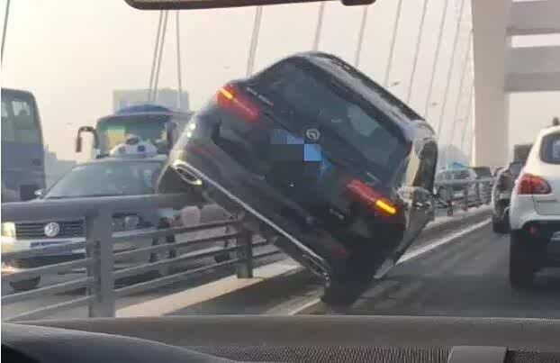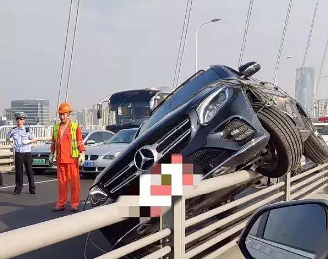 7月26日上午7时许,上海市卢浦大桥上发生一起奔驰SUV爬上桥面中心隔离栏上的交通事故,事故造成卢浦大桥道路双向拥堵。
