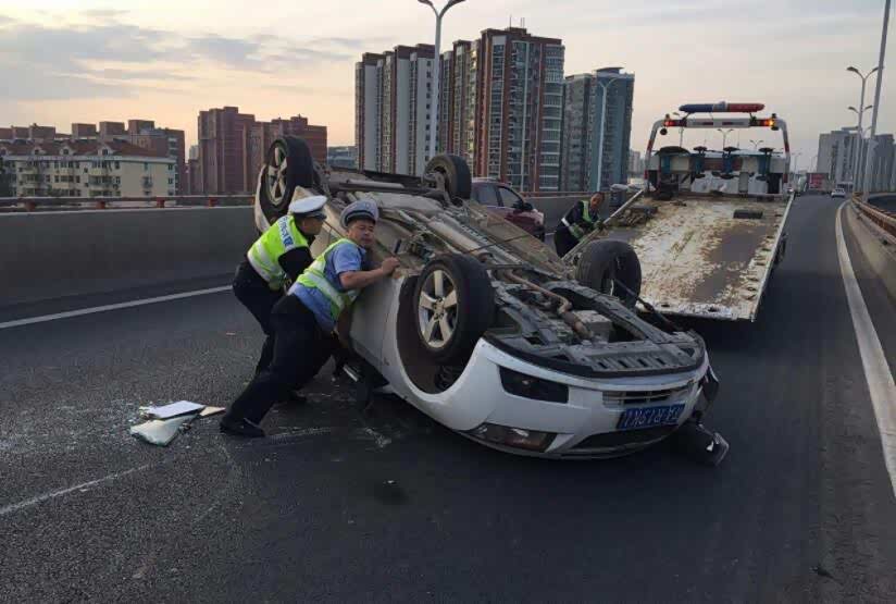 随后,大桥管养部门工作人员到场,在吊车和牵引车的配合下,险些侧翻的的奔驰SUV被吊正。随后涉事车辆撤离现场,事故没有造成人员伤亡,卢浦大桥车辆通行恢复正常,南北高架徐家汇路上匝道重新开放。