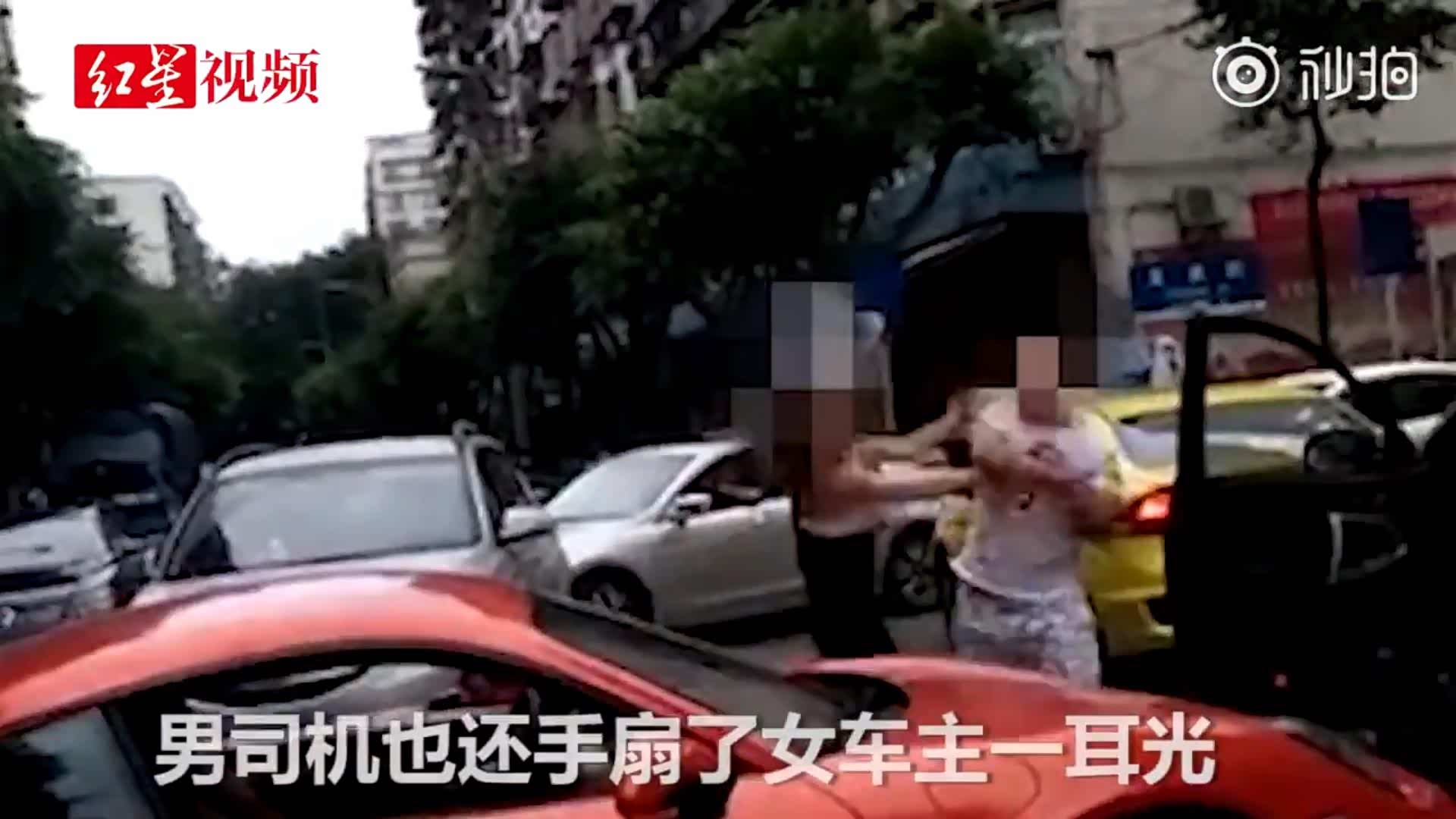 目击者称女司机在斑马线上掉头,男的没有让她,引发冲突,女司机打了男的两耳光,那个男的又还了一耳光 "。女司机还说,你开 XX 车嘿不得了蛮 "。