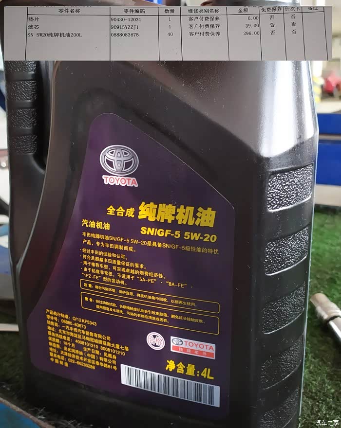 第一次付费保养,4S推荐0W-20机油,当然价格也是贵的。还好保养之前我足了准备,5W-20型号机油与0W-20主要区别也就是对温度的要求。从这次保养到下次保养期间,不经历冬天,气温也比较高,根本没必要换0W-20的机油,我干嘛还要花那冤枉钱啊。何况就山东地区而言,即便是冬天气温也不至于低到能够影响机油性能。