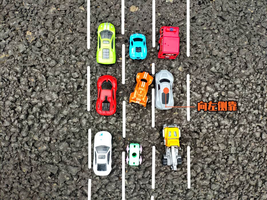当我们停车时,车身保持在一侧线条的边缘,另一侧侧将会有较大空间。如果此时有车辆想要加塞,你这里是最佳选择。