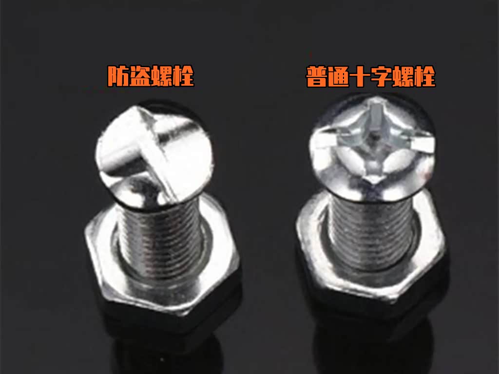 紧固螺栓有两种,一种就是如左图的防盗螺栓,只允许紧固不能松。右图则是普通螺栓。建议使用左侧具有防盗功能的螺栓。