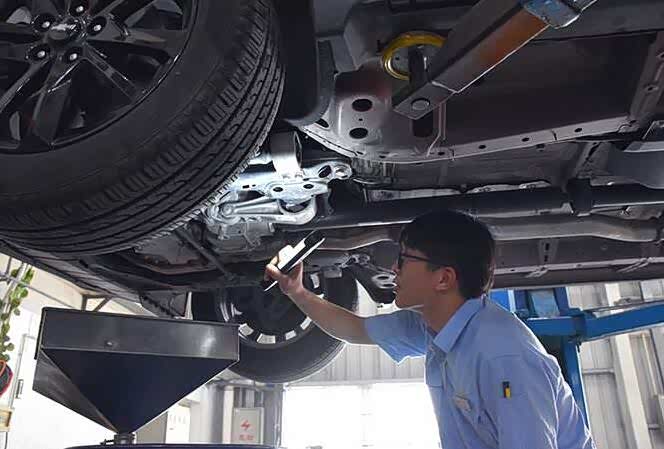 3、注意观察新车地盘,地盘可以观察到车辆是否漏油等情况,新车漏油也是有可能存在的,但是我们要尽量去避免遇到这种存在先天性漏油的车。