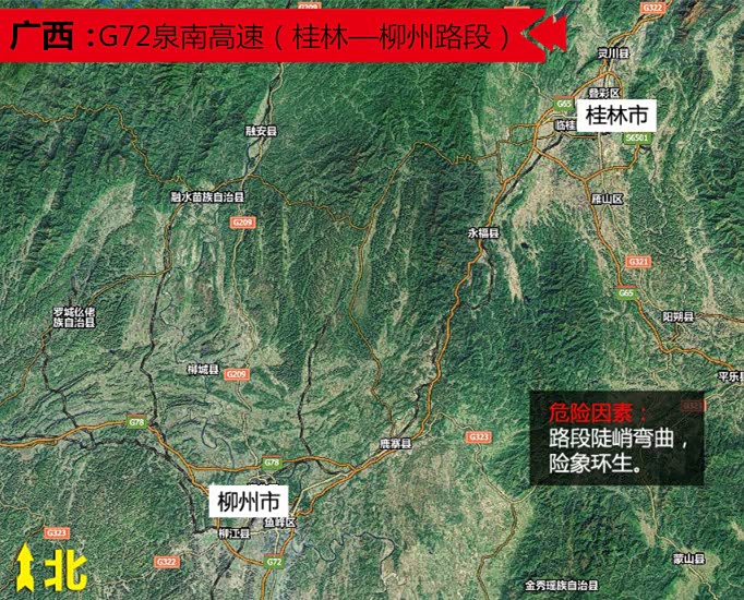 危险原因:多路况高速,弯路、坡路、隧道混合出现。