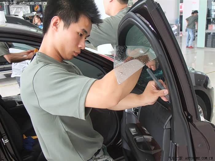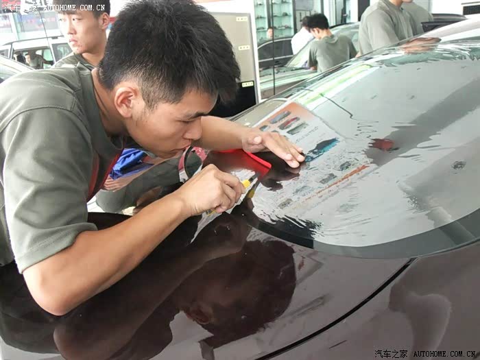 车窗内、外表面清洗(重点是内饰面和玻璃密封胶区域的清洗)。这主要是为了杜绝贴膜后隔热膜与车窗玻璃之间存在的污垢或者其他物体的施工质量问题,以保证膜和玻璃能够完美结合在一起。