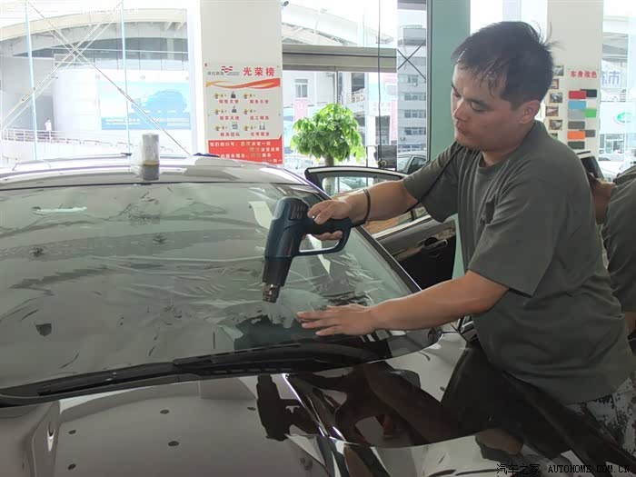 六、去除膜上的透明保护层,将膜贴到挡风玻璃的内侧。
