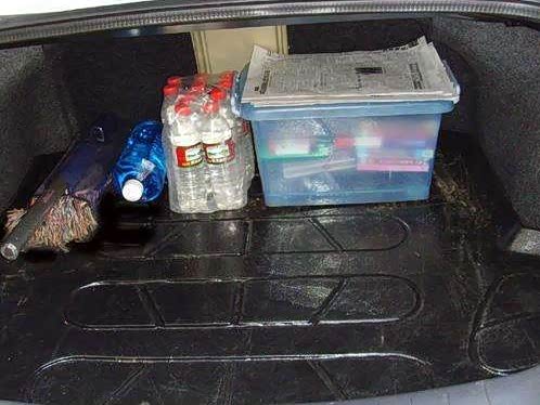 很多人都会在后备箱放一些玻璃水、清洁剂什么的,其实这种具有腐蚀性的液体,如果在行车中遇到颠簸或者碰撞,就很有可能包装破裂,从而造成腐蚀性液体外流,如果量比较大的话,很可能损坏车内的物品。