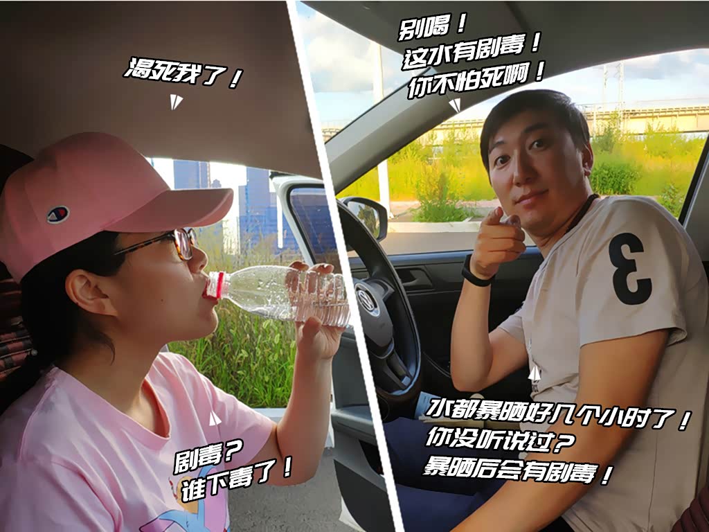 就算你将水放置在阴暗处,但由于车内空气温度高,同样会导致瓶装水温度升高的问题出现。最主要是影响口感。很多人拿起“温突突”的水,都会联想到有毒、口感差,所以就直接扔了。