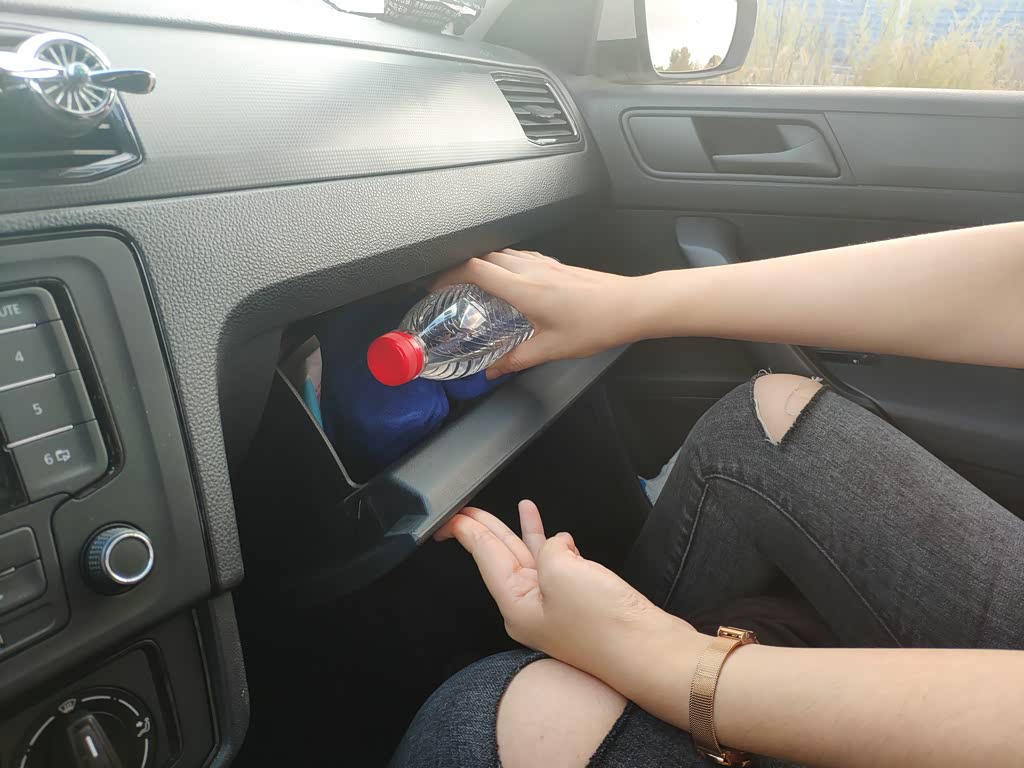 喝剩的水,我们将其放在副驾驶的杂物箱内部。这样可以有效保护水的温度。不易受车内温度影响。
