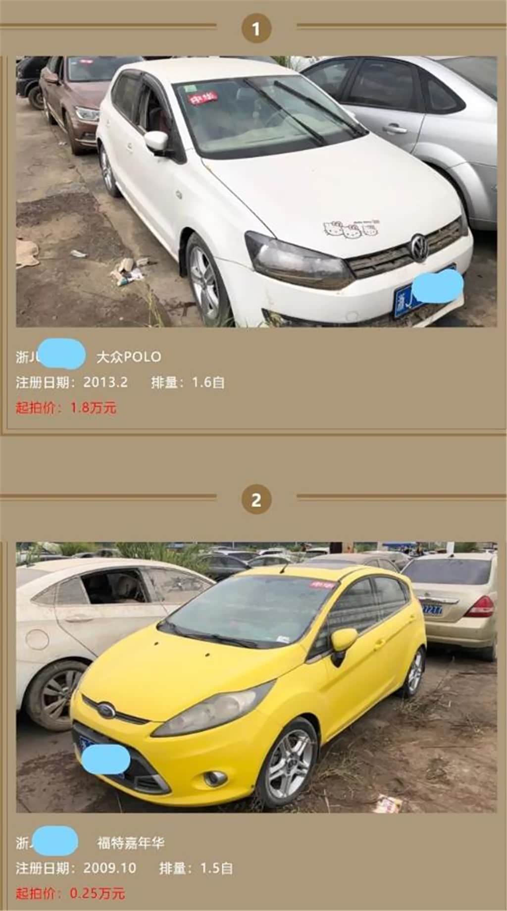 日前,台州临海的这些水淹车在网上公开拍卖,一台丰田雷凌双擎起拍价为5万元,丰田汉兰达起拍价12万元,宝马X1起拍价2万元,甚至还有一台05年的桑塔纳、07年的别克凯越、09年的五菱之光,起拍价仅需100元。