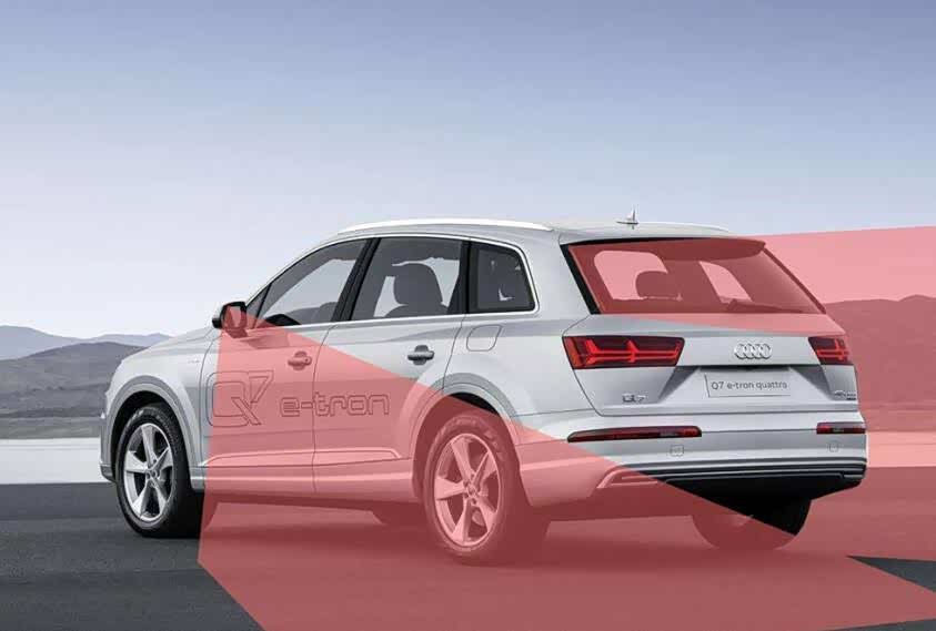 2、后盲区;后盲区也就是汽车车尾区域的盲区,这个区域可以通过车辆加装倒车影像、倒车雷达来避免可能遇到的行人和障碍物。