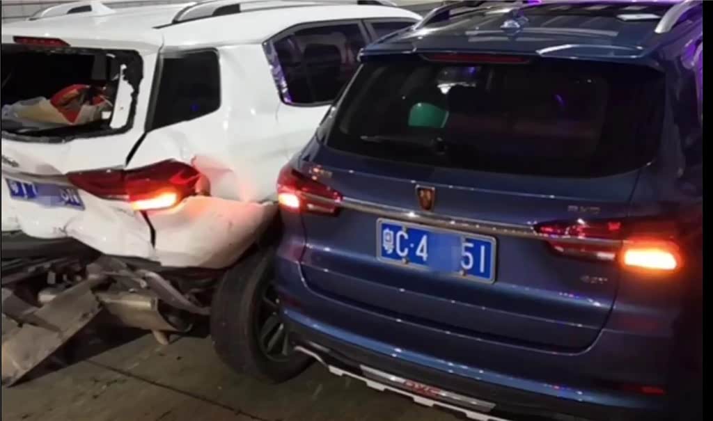 近日,在珠海市加林山隧道内,发生了一起事故,一辆从横琴方向驶来荣威小车快速进入隧道。由于隧道后半段车流较大,需要排队,但荣威小车丝毫不减速,“咣”一声猛撞上去,连撞两辆排队等候的小车。