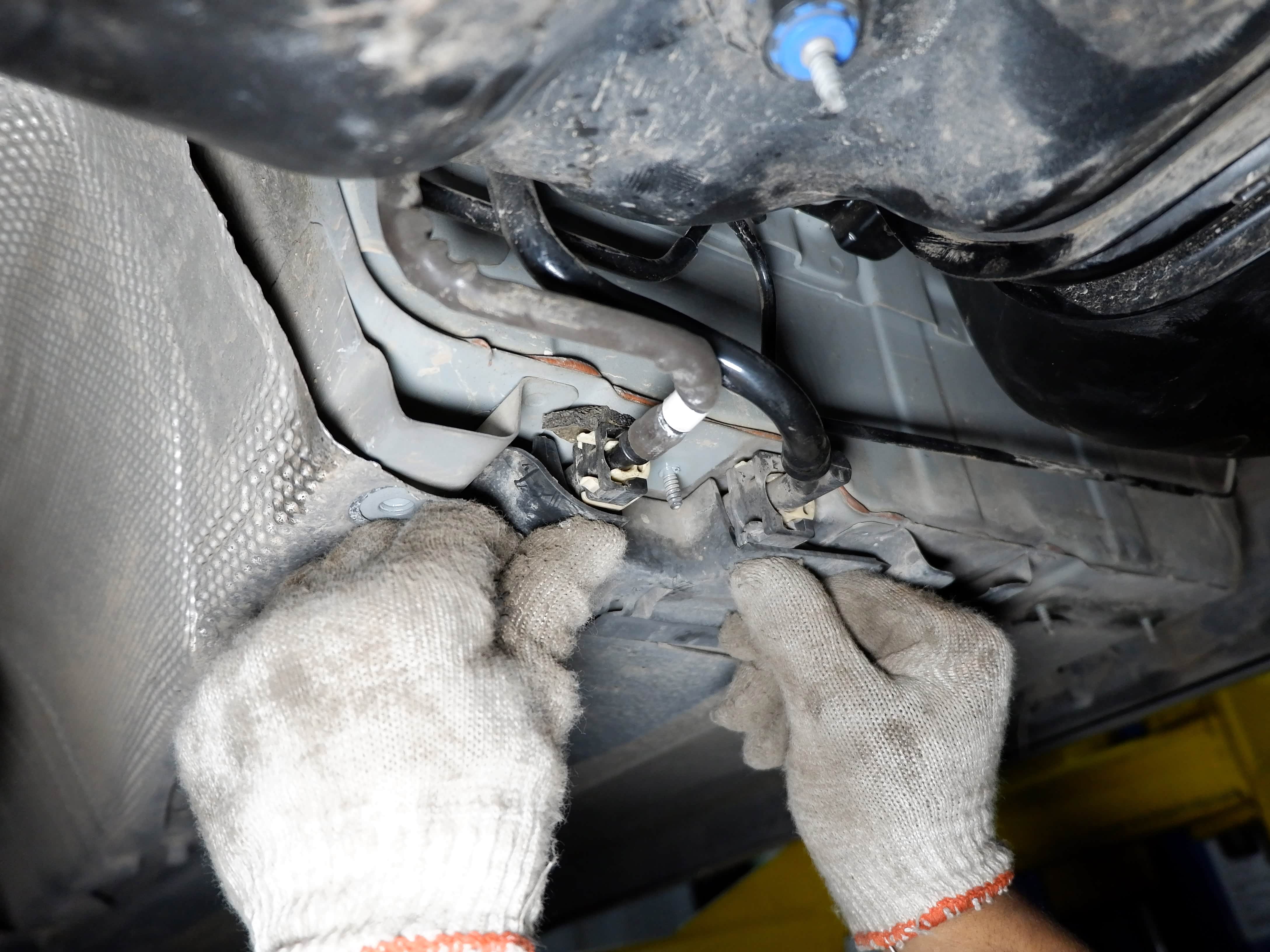 仪表盘上显示的油量都是通过油箱内的油位传感器进行传递信号的,毫无争议的是,这台沃尔沃必须要将油箱拆下来,更换新的油位传感器。