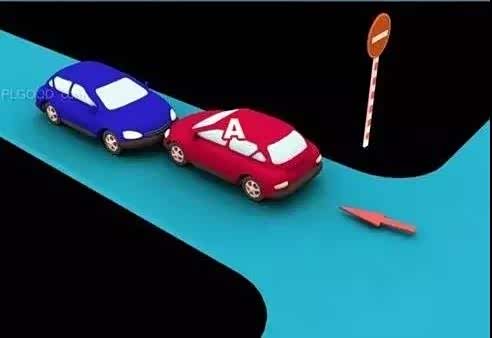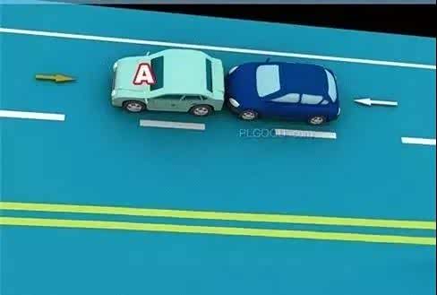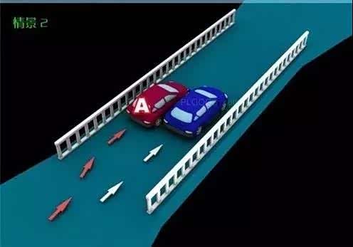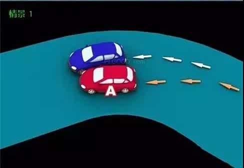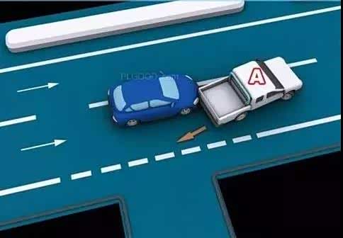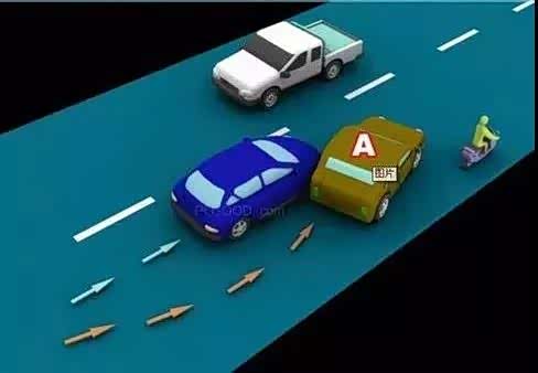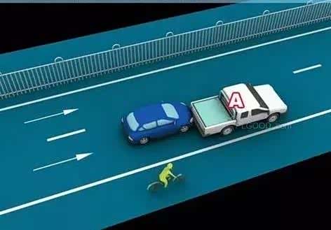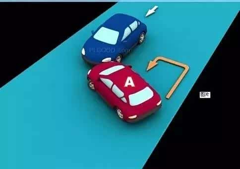 20、行径交叉路口、窄桥、弯道、陡坡、隧道时超车的,图中所示为A车负全责。