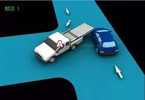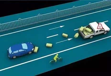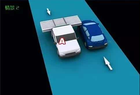 31、违反装载规定,致使货物超长、超宽、超高部分造成交通事故的,图中所示为A车负全责。