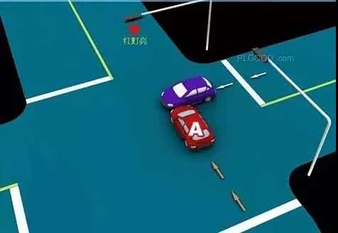 29、红灯亮时,继续通行的,图中所示为A车负全责。