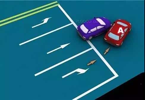 35、未按导向车道指示方向行驶的,图中所示为A车负全责。