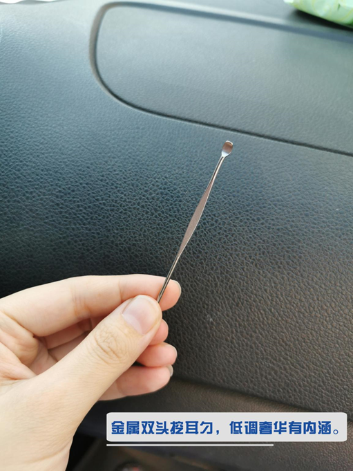 对,没错,就是挖耳勺!我清楚地记得我之前的一个女朋友有一次认真地注视着我并问我:“你知道我为什么喜欢你吗?”“因为我长得丑有安全感?”“不是,因为你的耳朵眼永远都那么干净。”虽然当时这个答案刷新了我的“三观”,但是在车里放一个挖耳勺,然后没事等人的时候掏掏耳朵的习惯确实帮我加了分,所以我要把这个神器推荐给大家,因为女生们都喜欢“干净”的男生。尤其是在车里时,女生一转头就能看见你的耳朵,所以各位男性同胞一定要注意哦。