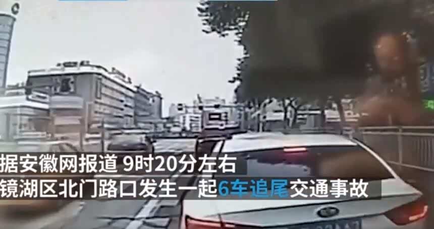 据安徽网报道,9月3日,在安徽芜湖北门路口发生了一起6车追尾事故,发生事故的车辆为4辆私家车、1辆出租车、1辆公交车。