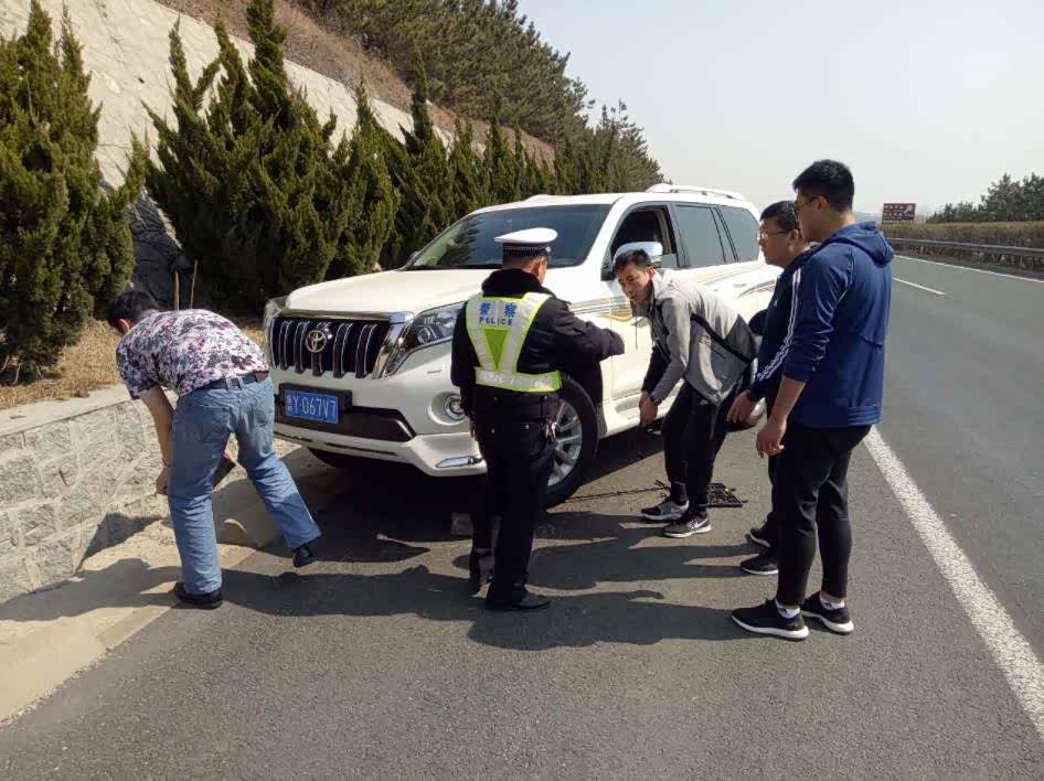 原来是车子在高速上爆胎了,因为车子上没有三角警示牌,女子就想打起伞围着车子走动,用这种方法来警示后方车辆。“这样做实在太危险了!”李新说到,这样的操作很容易危及到这位女子的安全,如果后方车辆没注意,在女子走动时就有可能撞上她。在对女子进行教育以后,李新和同事把自己车子上的三角警示牌放置在了故障车辆的后方,并和同事帮助女子更换好轮胎后,让女子驾车离开。