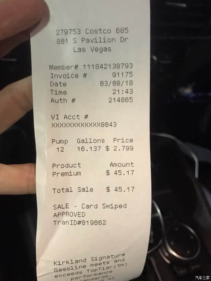 3/8: 拉斯维加斯加油16.137加仑/45.17美元/2.799