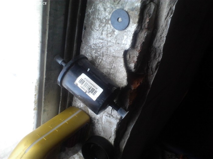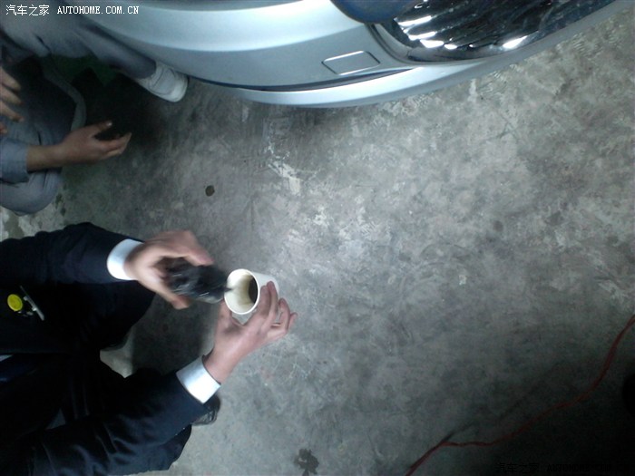 这是从后座下面卸下来的机油滤芯器,维修小哥在倒里面的汽油!!!