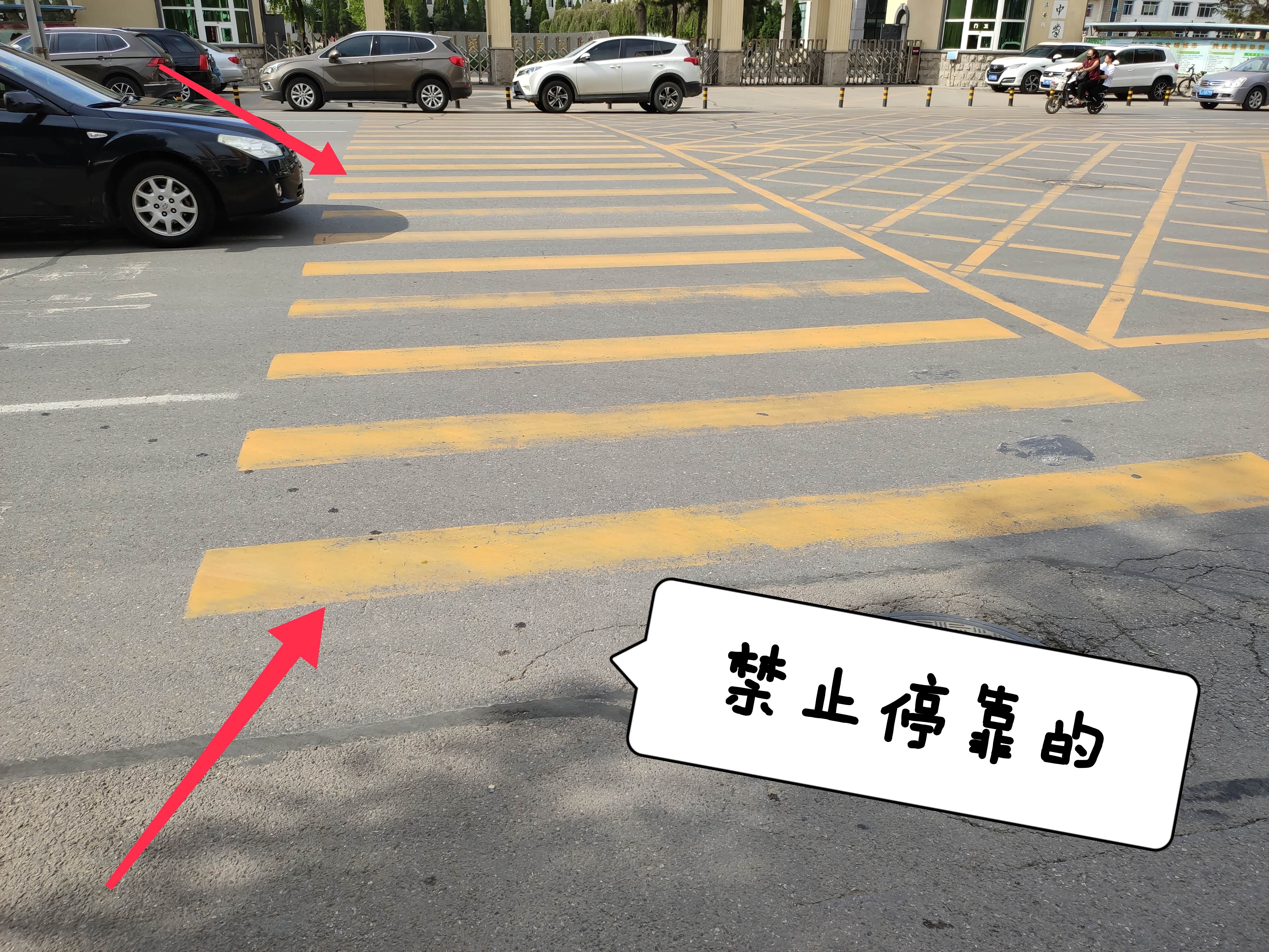 而在学校路口还有这样的路面提示,为方便学生的出行,禁止停靠的黄色人行横道线与禁停标线搭配组合,更加提示这样的人行横道不光要停车礼让,还是需要机动车远离人行横道线的。不然的话处罚会随之到来。