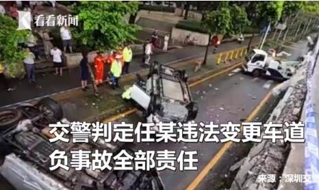 在失控过程中,任某驾驶的小车还与由陈某杰驾驶的小车发生碰撞,从4米高的地方落下,幸好只是造成三人受轻微伤。目前,深圳交警认定任某违法变更车道造成此次事故发生,承担全部责任,其他人均无责。