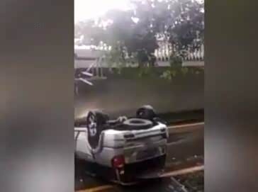 近日,在深圳北环大道皇岗立交上发生了一起三车相撞事故,驾驶员任某驾驶小车沿最右侧车道行驶,在往左变更车道时,与由刘某驾驶的小车发生碰撞。两车碰撞后导致车辆失控,两辆车往右侧水泥护栏上撞下,并从主道上坠落到高度相差4米的辅道上,导致两辆车子都翻倒在地。