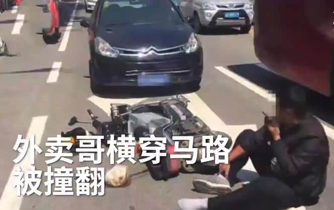 近日,在甘肃兰州发生了一起交通事故,一外卖员在骑车横穿马路时被一辆小车撞伤在地,导致外卖员右小腿骨折,车主也立即拨打120把外卖员送到医院救治。