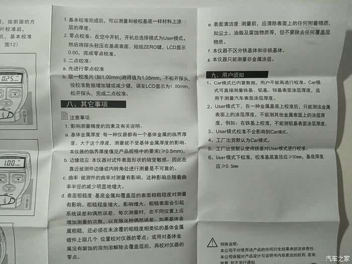 2、缺点:感觉用处不是很大,一般人也不会没事测量车漆厚度吧,感觉也就买车的时候可以用一下。