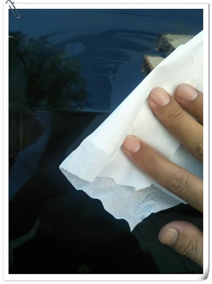 然后就是先擦拭一下划痕部位,其实车子刚洗过不擦也可以,生怕影响效果,所以再擦拭一下。